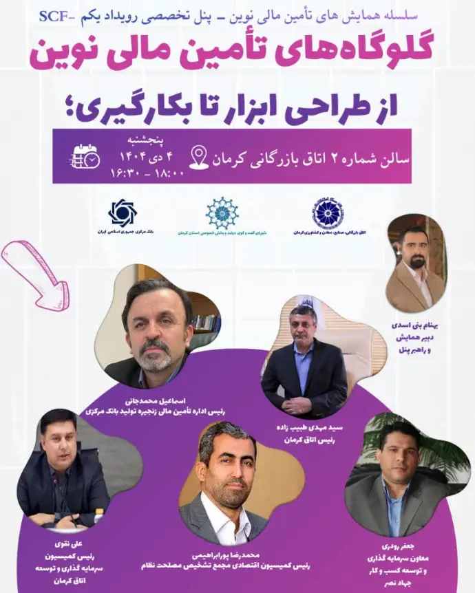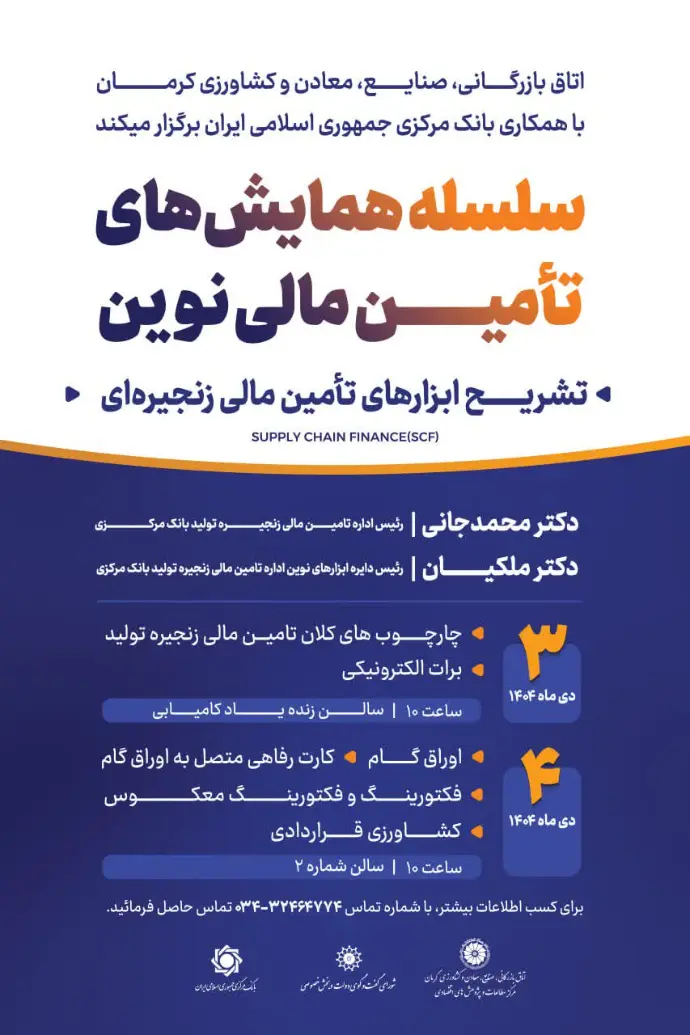 اولین جلسه سلسله همایش های تامین مالی نوین طی دو روز در 3 و 4 دی ماه 1404 در اتاق بازرگانی کرمان برگزار گردید.